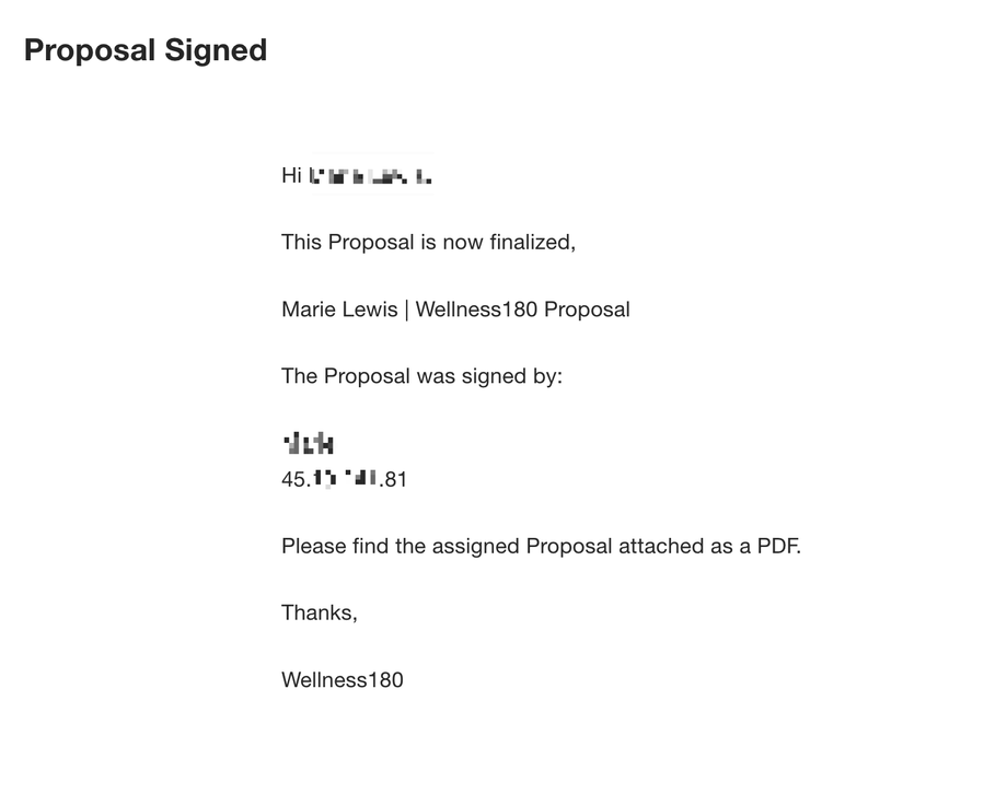 - After the recipient signs and accepts the proposal, they will see a Thank You Page.